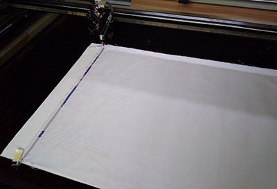 after doing this test i noticed cutting cloth on laser produces very bad smell and it may be harmful to you on inhaling so i am writing some measure you need take while doing this process on basis of my experience