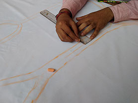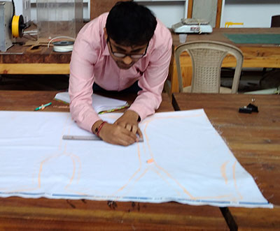 2 Getting right material for laser cutting - As there are certain material which cut nicely with laser cutting for this i checked list of material on some site reference site some suitable material which can be laser cut ,Cotton, Felt, Silk, Linen,Lace,Polyester,Fleece,Softshell,jeans, Alcantara etc for this i went to old city in Ahmadabad where i find the material i go with material made of cotton +polyester ( i.e 65 percent cotton and 35 percent