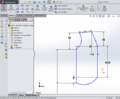 For designing this design first the half of it and mirror it to get the front and use this complete design remove the extra curve from trim command you will get the back side of it here i first made in 1:10 scale than scale it down by factor 10 to get correct dimension .