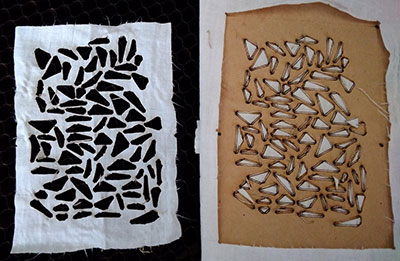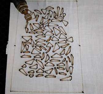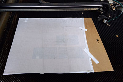 1 Before cutting cloth fix this on cardboard sheet or drawing sheets i used both in my experiment as so cloth will be stretch througout cutting otherwise it may start moving due to air coming out of nozzle which may result in burning
