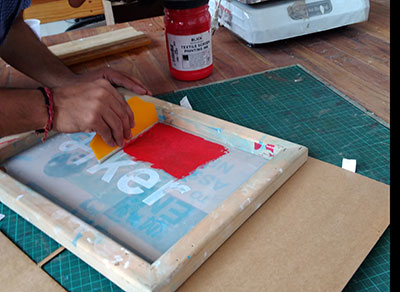 here i printed this directly as i have to print on whole cloth and it's done nicely the process is simple in this we use screen and tecttile color