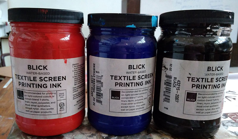 colors i used for screen printing , this are all textile screen printing ink this if your hands get colored with this than just wash them with water it easily remove even after printing one thing on screen i wash screen and reuse it