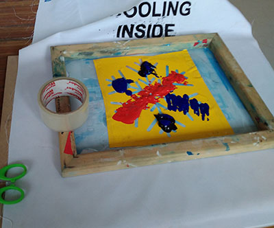 printing another pattern on screen for this i used the same process ,here i use 3 colors using combination of all three i print colorful design for this make sure you spred the color evenly on each side.