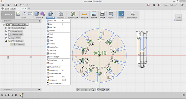 In this way you easily change the dimension of of comb to check this on different material i did this in 2mm and 3mm mdf get parametric laser cutting file in fusion 360 ( .f3d format ) here