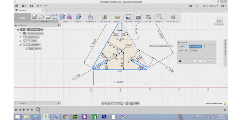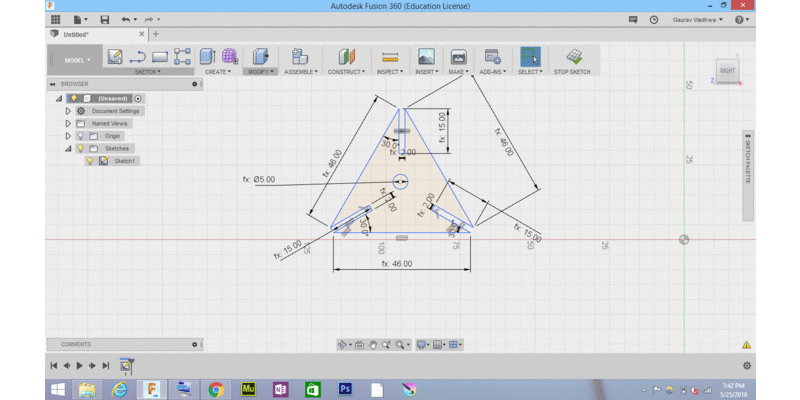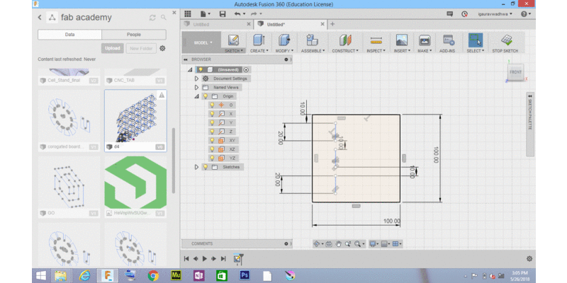 we have to design press fit construction kit which can be assembled in multiple way for this i created a pattern , with notches which you can connect to form multiple press assembly , i created that in fusion 360