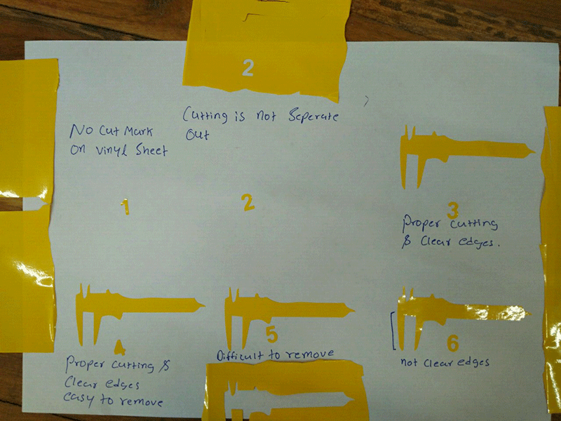 1 for getting right cutting of vinyl sticker must do test cut varing force as it give you correct value of force so your sheet will cut nicely
