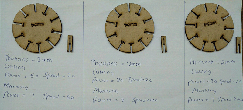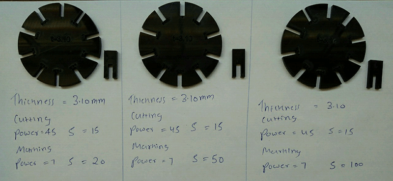 Characterize your laser-cutter, making test part(s)