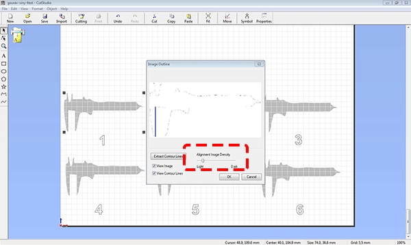 to adjust the image allignment density to the point where you get visible neat and clear cutting lines i also did vinyl cutting in Week 17 and Project development Week refer both week to see my work
