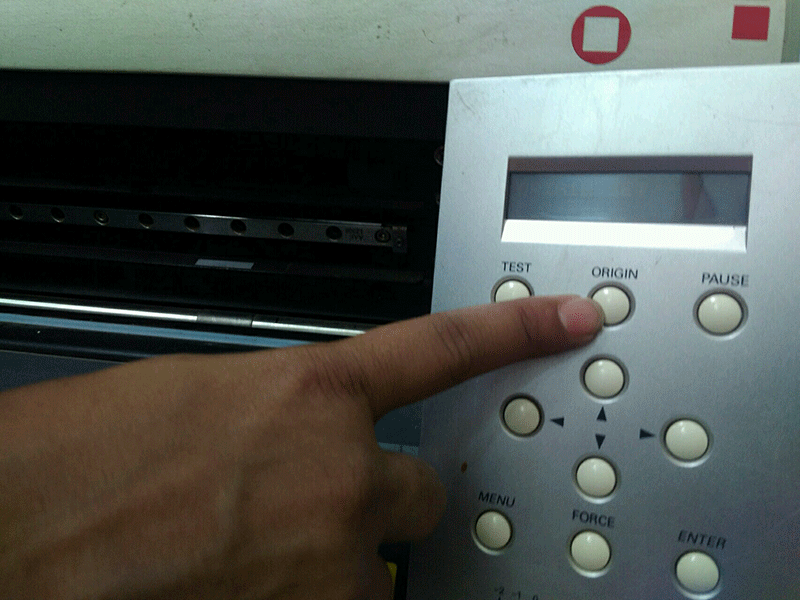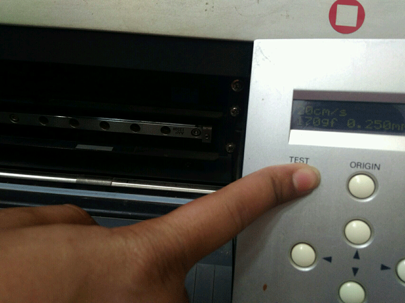 For test cut first set origin by pressing origin and Once origin of the Roland cutter is set so now press test button , it will make a square in a circle, I removed the vinyl cut from the main sheet and checked the cutting was properly done or not and it is proper so my force value is okay