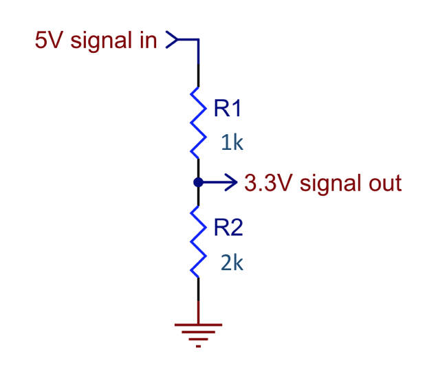 One small warning is that the FTDI cable I was using sends out 5V signals, but the ESP-12E module only accepts 3.3V signals, and I read that connecting a 5V signal might damage the chip. To get around this, for any signals being sent from the FTDI cable to the ESP-12E, I used a voltage divider circuit to convert 5V to 3.3V. An alternative would be to use a 3V FTDI cable.