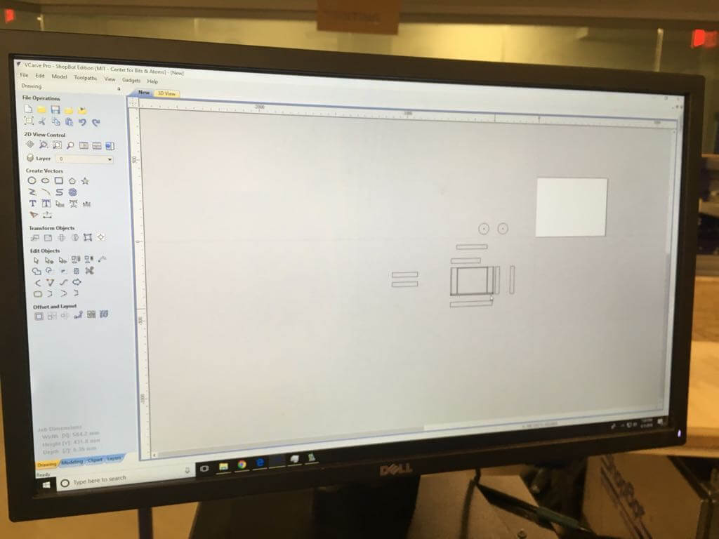 Our sketch is finally transported to Vcarve. First we had to delete some lines because for some reason Vcarve is able to see any construction lines that we draw in our design. After doing our final editings our file is ready to be cut.