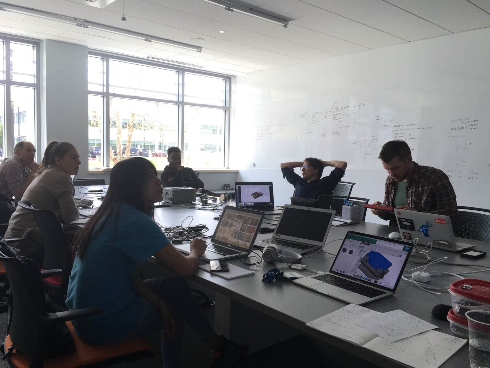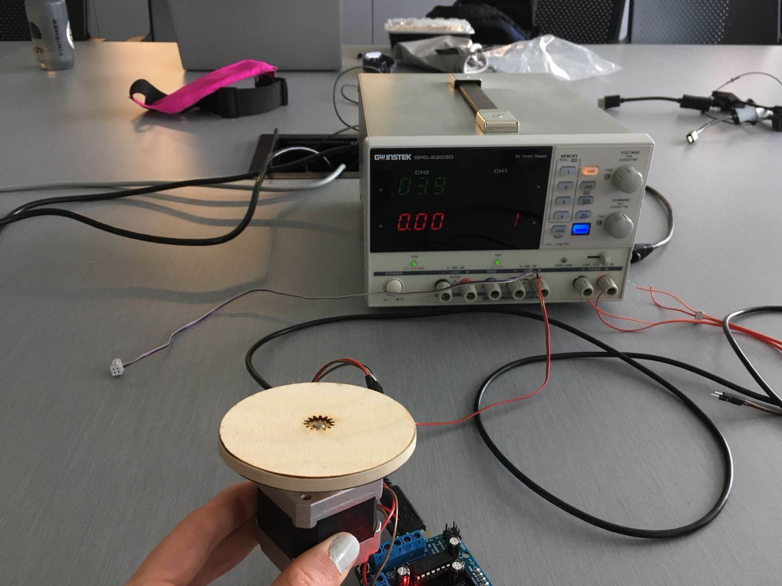 We were turning on some motors and holding it next to our machine to see if the motor was strong enough. Also to see if the knobs will turn with the motor.