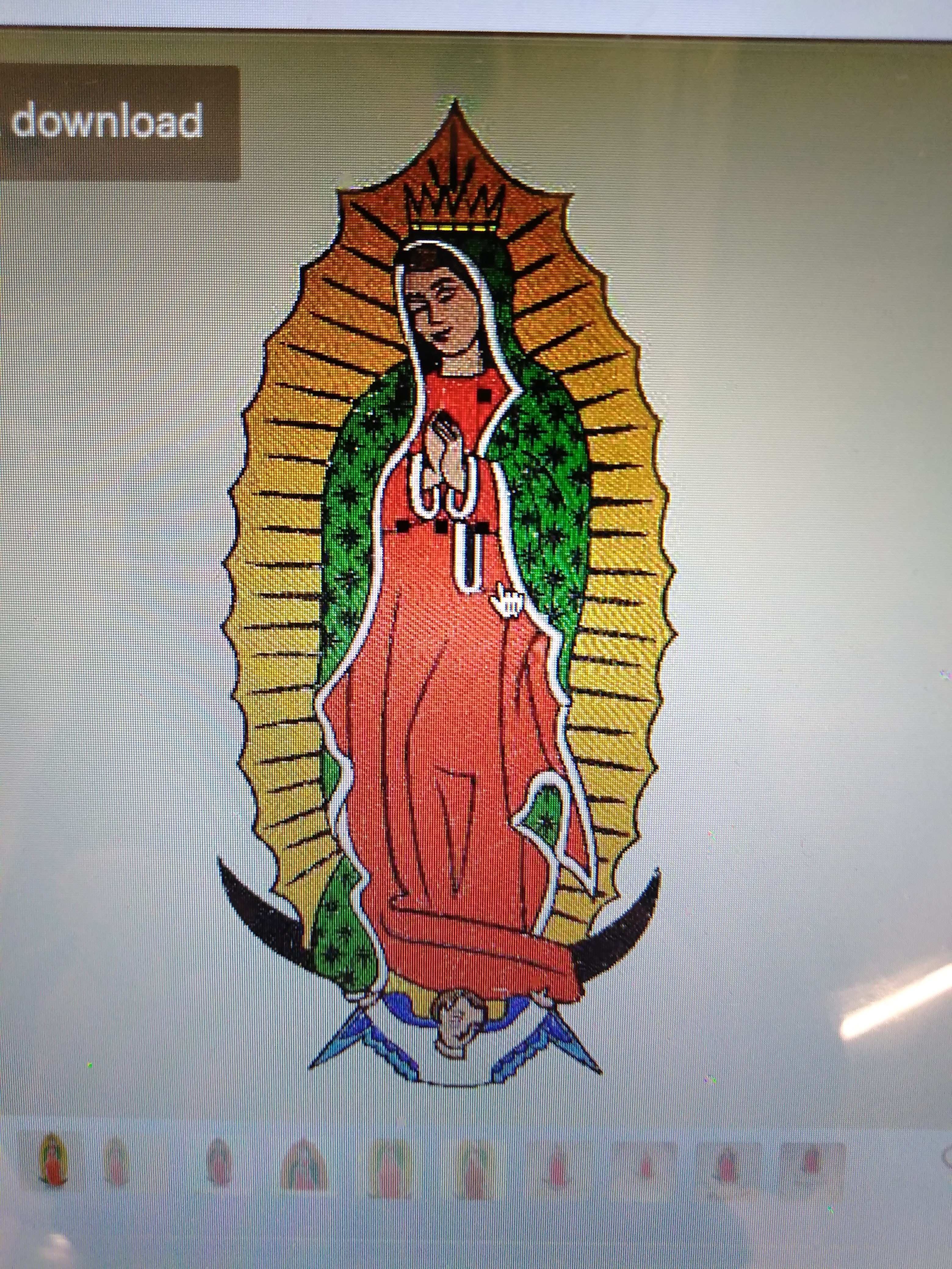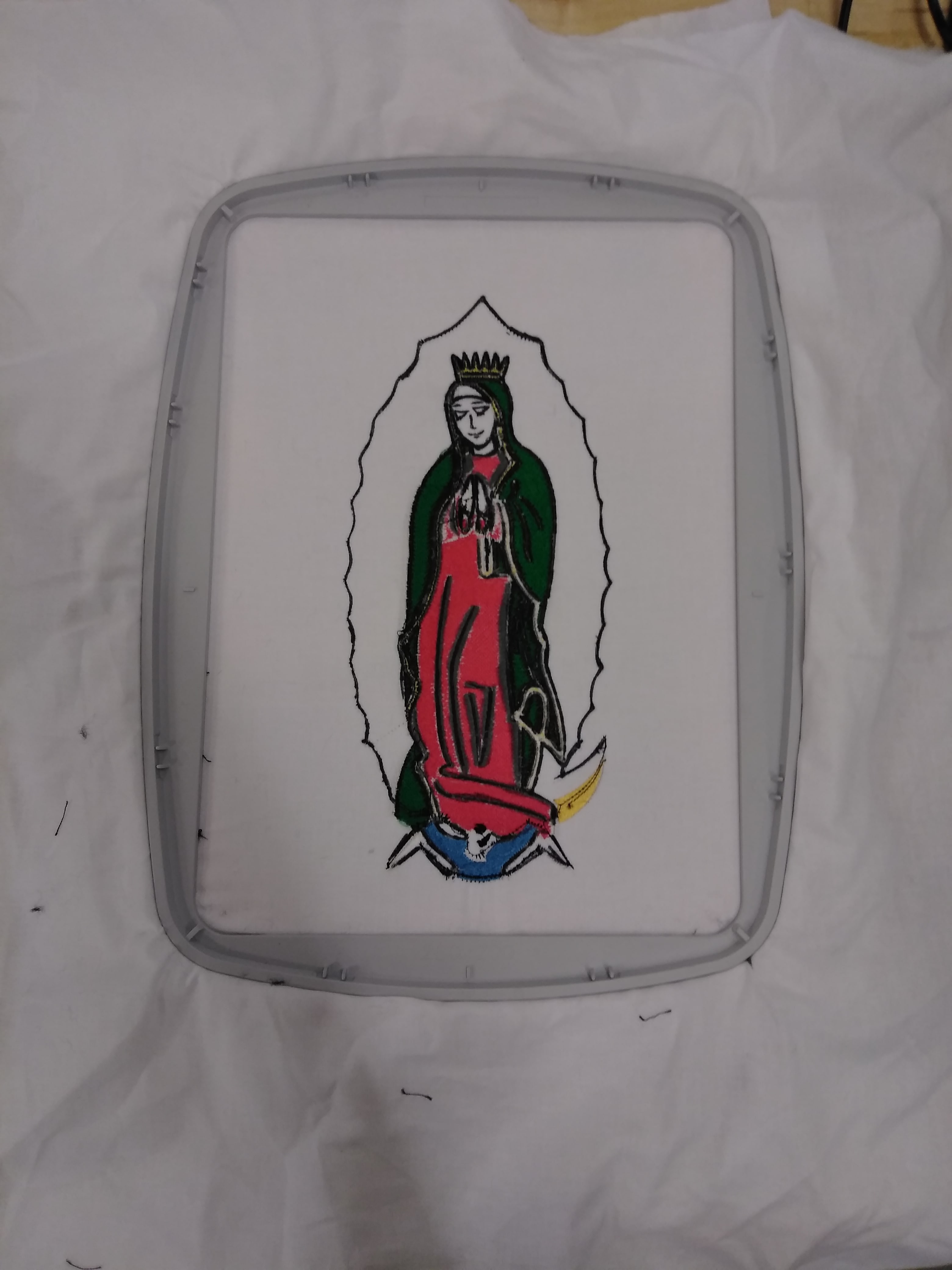 This picture is showing that my design has different colors. Which means that I have to change the colors everytime one is done. I changed the bobbin as well so that the color from the bottom and the color from the top match.
