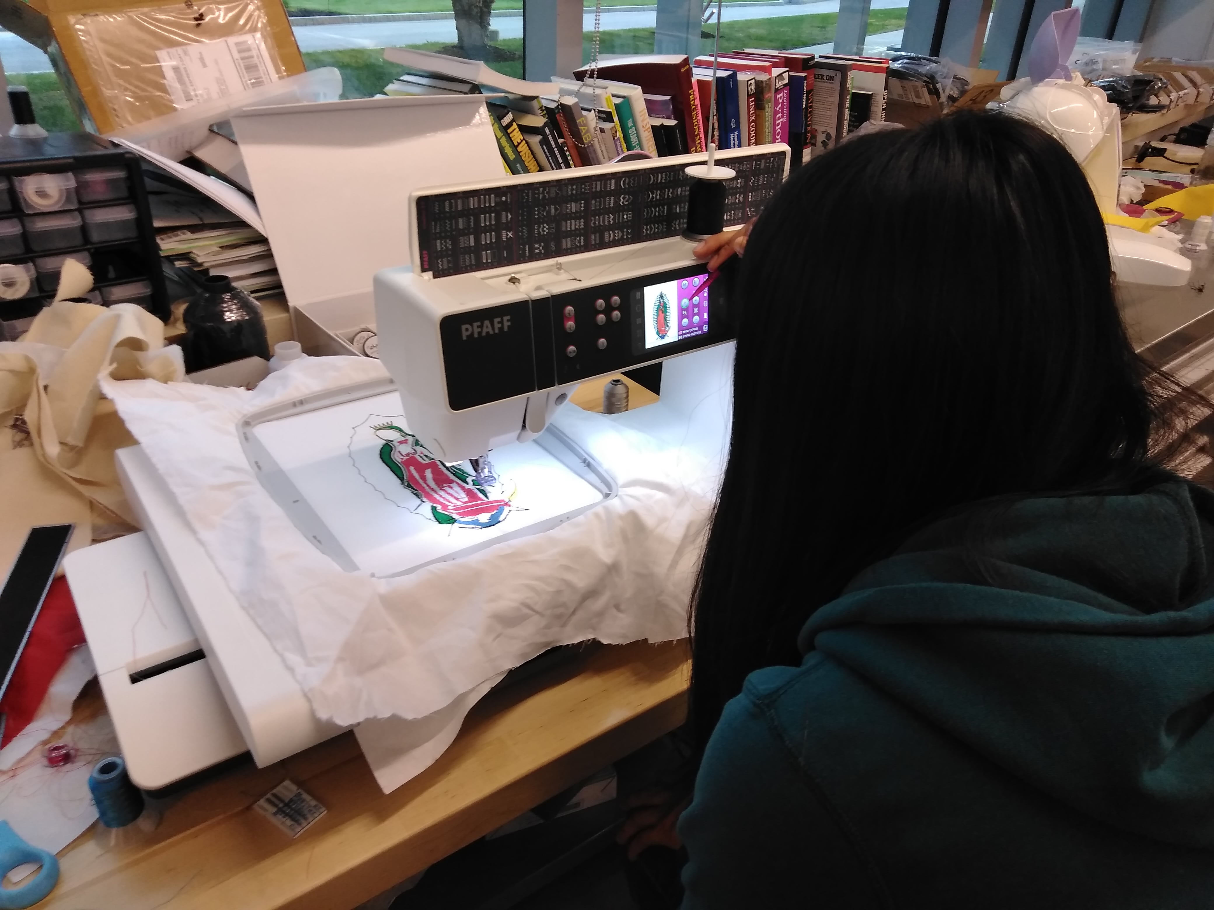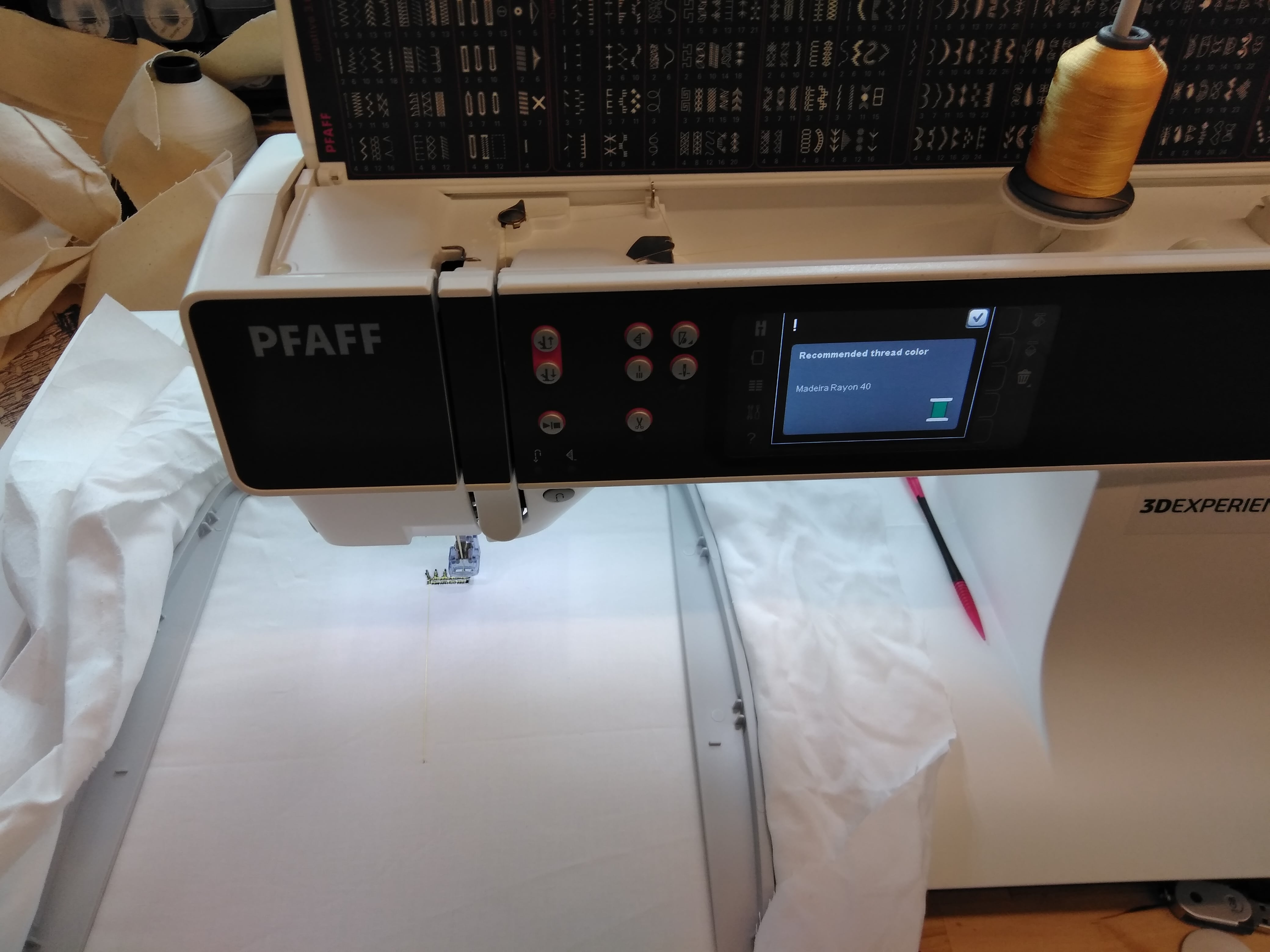 Then I realize that there are this beautiful costumes that they have in my country to dance special dances in special days. So I realize why not make something like that. So I downloaded my file to my flashdrive. Then I used the Pfaff Performance sewing machine.