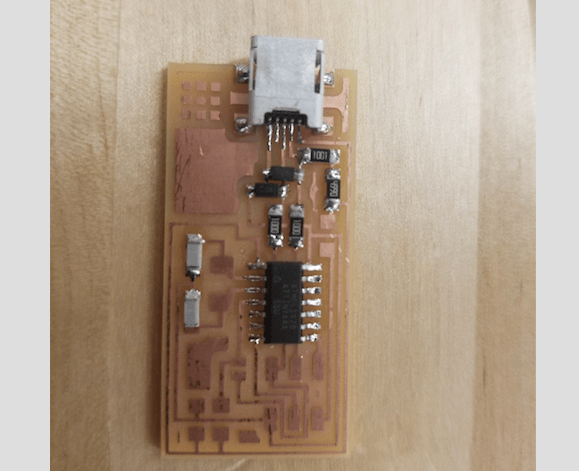 This week we learned how to milled a board, solder the components. Also, to program it and to be able to communicate the computer with the board. My FabISP is an in-system programmer for AVR microcontrollers, designed for production within a FabLab. What does a FabISP do ? It allows you to program the microcontrollers on other boards you make. We will be using these programmers through the semester to program the other boards we create.