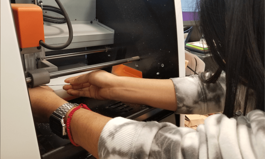 The machine that I used is MonoFab Roland SRM-20. First thing I had to do was to press the ON button to turn on the machine. Once you have done that, the machine will move to home. The machine has two coordinates has a X and a Y. Then it has a Z x’s, the Z x’s is for the spindle to know how deep is gonna cut into the material.