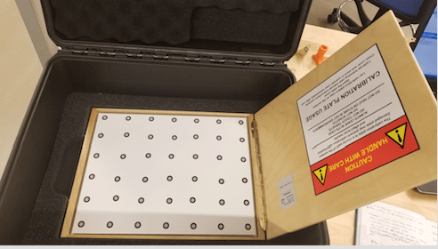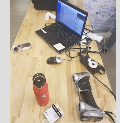 One of the scanner that I used is called handyscan 3D. So first you turn on the scanner and connect the scanner to the computer. The square big button is for the menu. Then their is a little square buttons the + is to move things up in the menu and the - is to move things down from the menu. Before you start scanning you have to calibrate the scanner. To calibrate the scanner you have to do what the computer tells you to do in order to calibrate the scanner. Is pretty much following dots with the scanner.