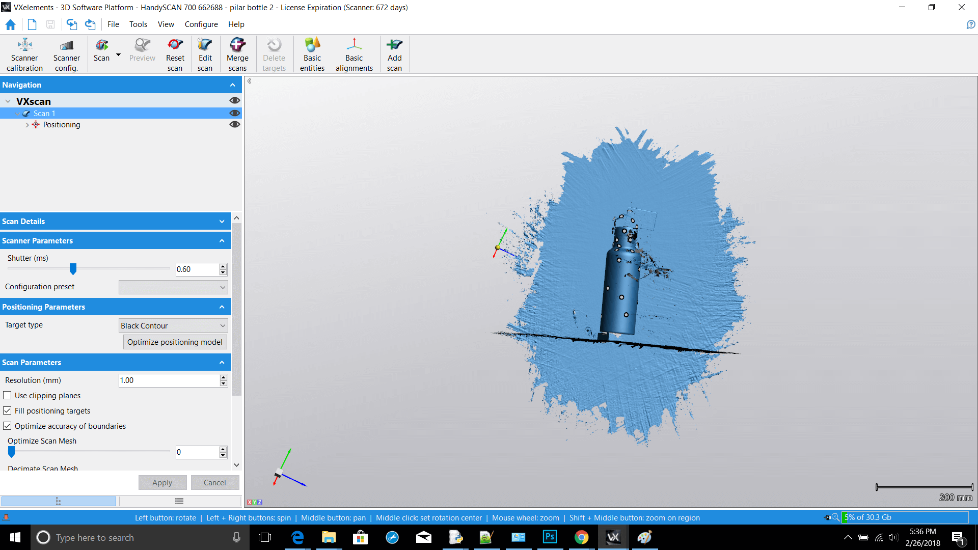 Things that used to complete my scanning assignment are; computer, scanner, position targeting tape and my water bottle.