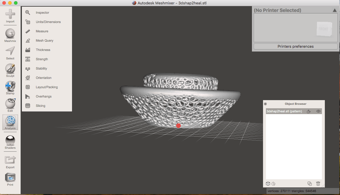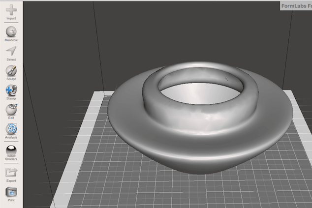 I found this program in a youtube tutorial called meshmixer. Meshmixer is a free 3D sculpting based and a extension of fusion 360. I open my file on meshmixer and this is how my shape looks like just like is showing in the picture below.