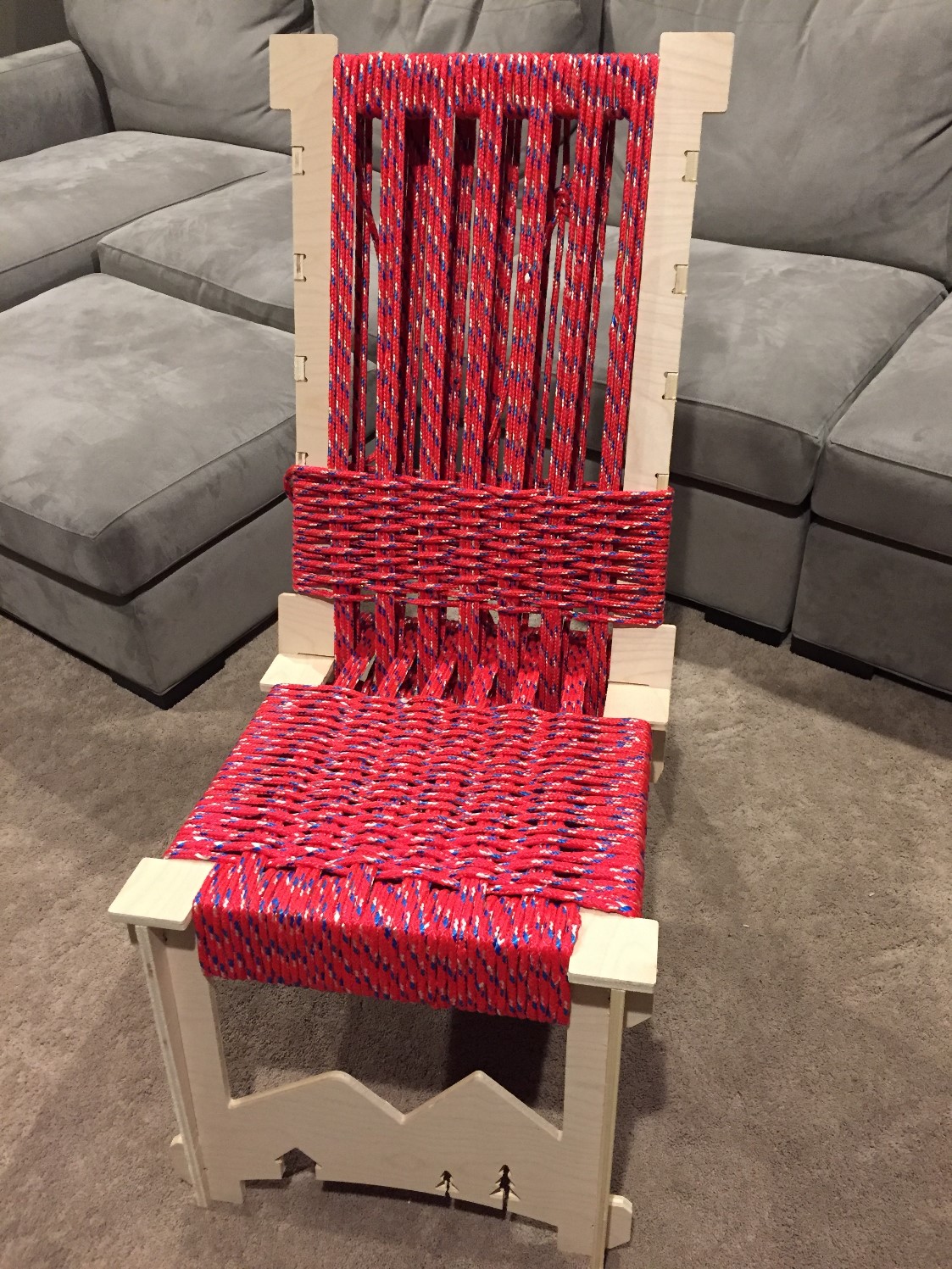 The chair is still a work in progress. One final lesson I learned was "it's better to purchase more rope than you need". Honestly, I did calculate how much rope I would need, but I came up 100 feet (one bundle) shy. I made the wrong assumption in terms of how the rope would travel across the furniture and that made the difference. Here's what it looks like today: