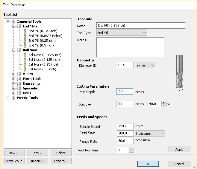 Run the tool at the correct feed and speed! I used a 1/4" end mill with the following settings for my cuts. I increased the pass depth to 0.17" so I could cut through my half inch plywood in 3 passes.