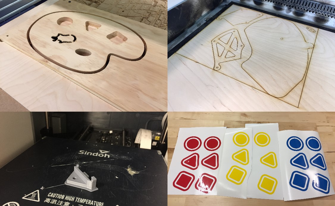 In the process, I designed components that would be machined on the Shopbot, cut on the laser cutter, printed on a 3D printer, and cut on the vinyl cutter. Each of these techniques is highlighted in the above video and shown in the following collage.