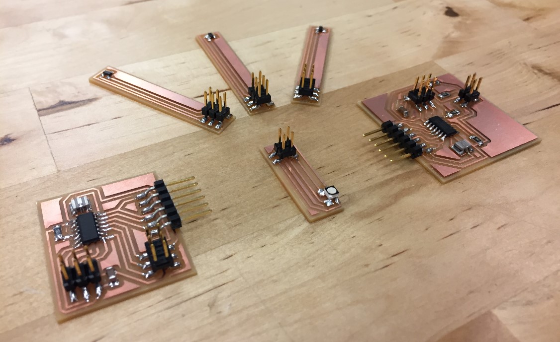 My big headache came when I couldn't get the LEDs to obey my commands :(. I troubleshooted the code for quite some time and then realized that the problem might be in hardware. I took specific readings from the hall effect sensors, and found that they were outputting gibberish. I then took one of my older boards that had a hall effect sensor on it and held temporary jumper wires between the boards. This produced good results from the old hall effect sensor. With this, I determined that I managed to get a hold of a bad batch of sensors. Slightly defeated, I machined 3 more boards, grabbed 3 more sensors, and soldered the components in place. This,thankfully fixed the problem.