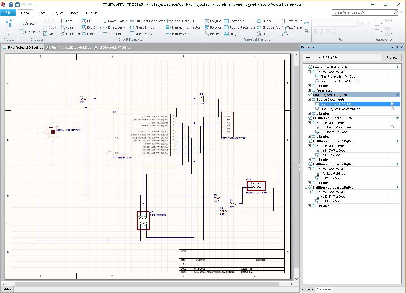 The first step in the process was to sort out the electronics. I had done some proof-of-concept work in the Input, Output, and Networking weekly assignments, so I jumped right into SolidWorks PCB to lay out the schematics and the boards.