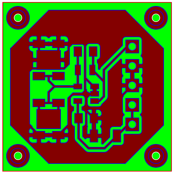 Then I exported the PCB in two file formats: colored *.svg for the Cu layer, and *.dxf for the Cu outline