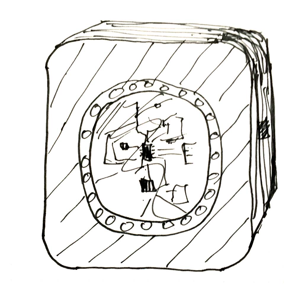 For my final project I reverted to an early sketch. I decided to make something the size of a bedside alarm clock. I was concerned with two things regarding the design. One, making something more interesting than a cube. Two, doing something nice with the light that the clock emmits without it looking too much like Iron Man's heart.
