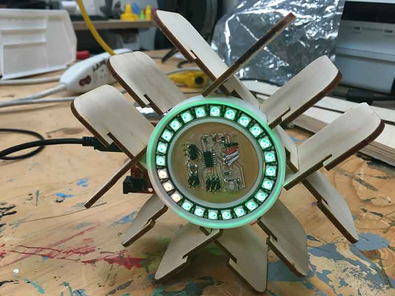 This early model was created as a way of suspending the NeoPixel ring and circuit holder within a structure.