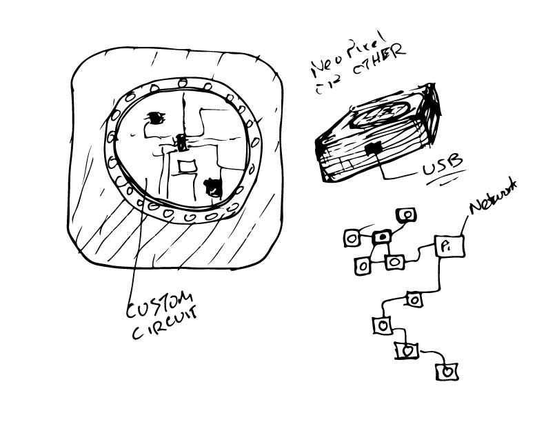 This project is inspired by my relationship with Brian Silverman & Artemis Papert. Brian, one half of the Playful Invention Company and Artemis, an artist with a personal connection to the evolution of Logo, were working on a Color Clock. A while back, they visited me after work in the LCC Fab Lab with a breadboard version and wanted to prototype some ideas on how to package it. It was built around the Adafruit 24 5050 RGB NeoPixel ring, an Adafruit Metro Mini board, and a Chronodot Real Time Clock. It is programmed using microLogo which is a flavor of Logo that Brian Silverman has been working on. This Color Clock breaks up an array of 24 pixels and divides them into 4 sets of 6 which translate into a pattern translating into hours and minutes. Unless you spend time watching and comparing to a traditional clock, the only people who can read this are those with the key to the pattern.
