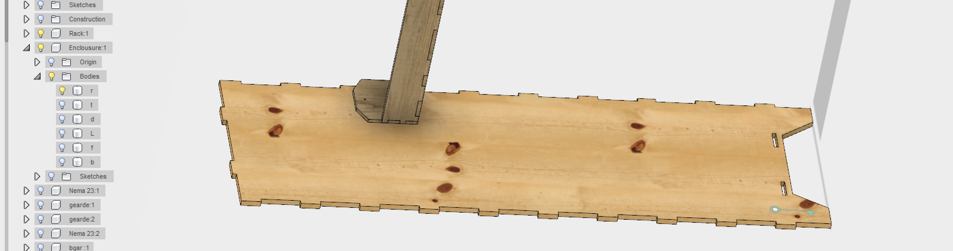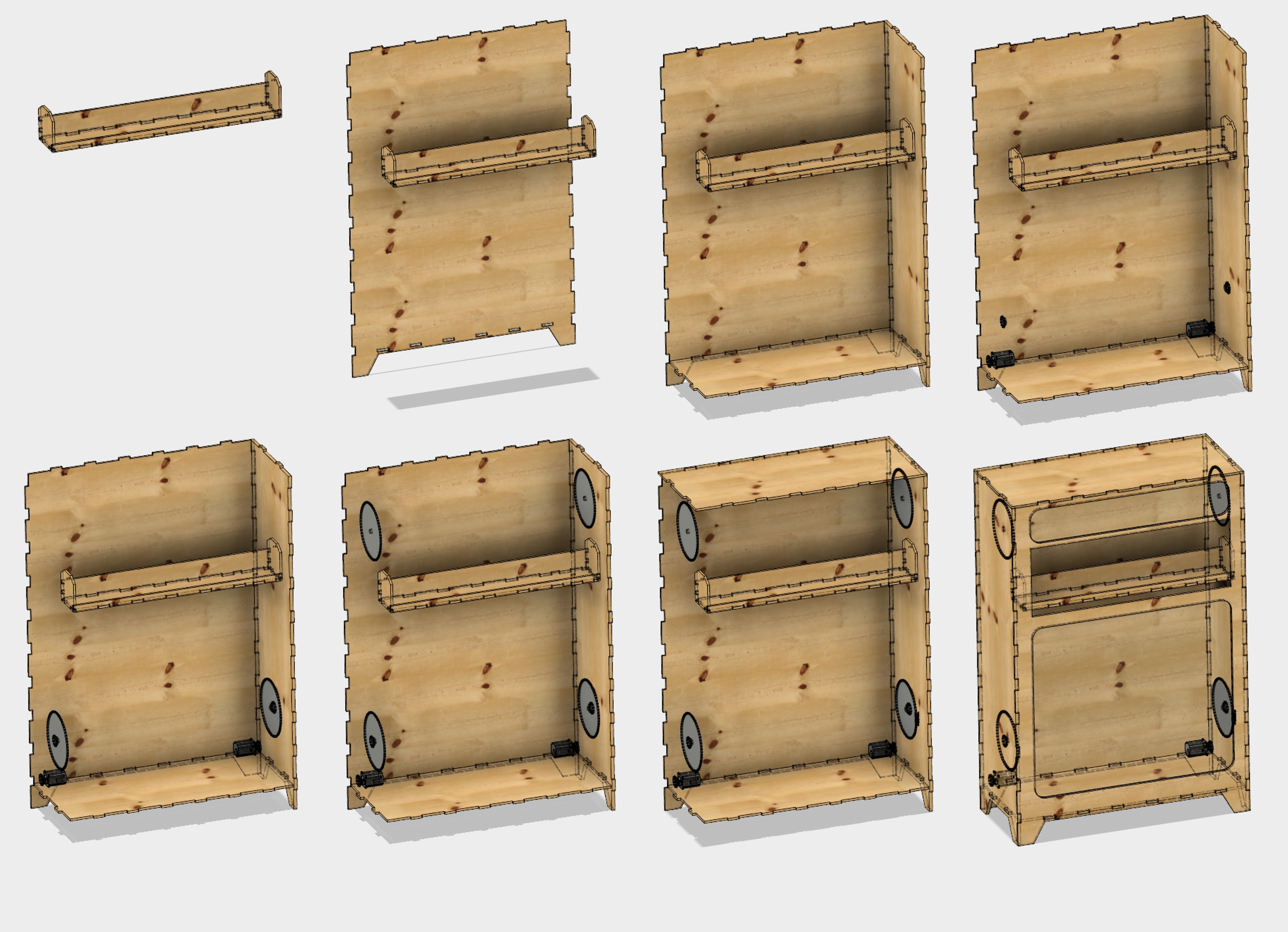 I have also made a design where it will be cut in the laser cnc to then assemble the parts and make a mini replica of the project.(with a size of 40cm x 30cm x 20cm)