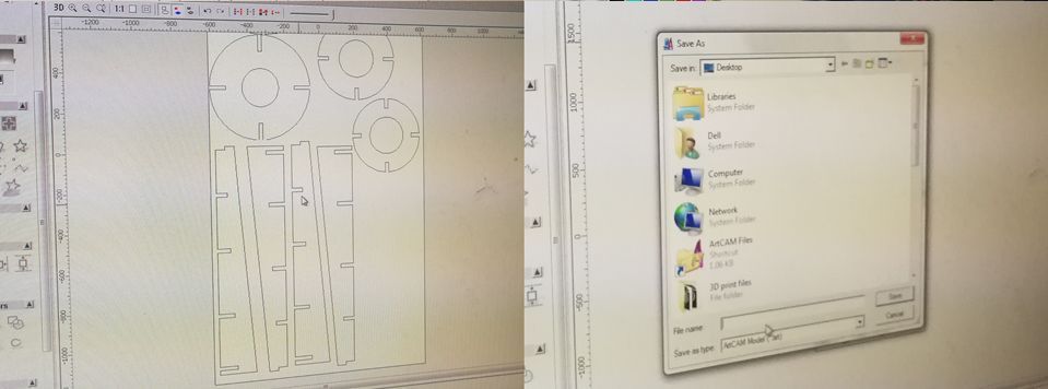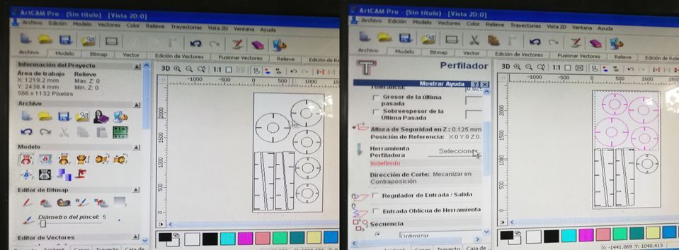 Eliecer showed us what is the program to be able to cut in the cnc and the appropriate format. to enlist the file of code g we use artcam and for the cut we use NcStudio