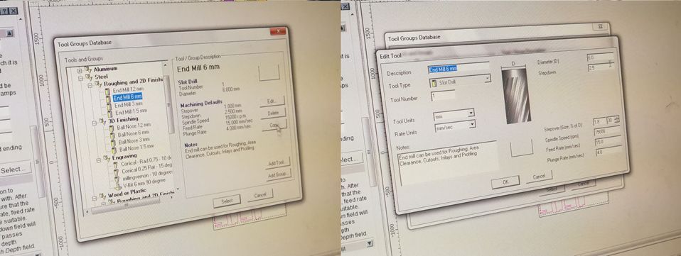 The cutting tool that I used is 6 mm and endmill type with a speed of 15000.
