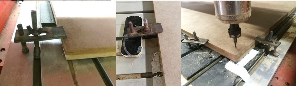 Then adjust the iron to the table of the CNC with this metal plate and screws for each corner of the plate also we place the cutting head in point 0,0 origin.