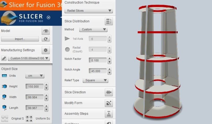 As I have already used the program slicer. I just had to configure the size and thickness of the worksheet that in this would be the MDF wood and select the technique of construction radial slicer with the necessary amount of horizontal and radial slices.