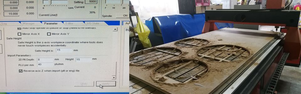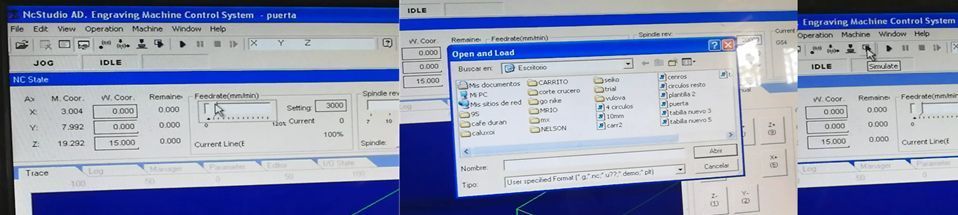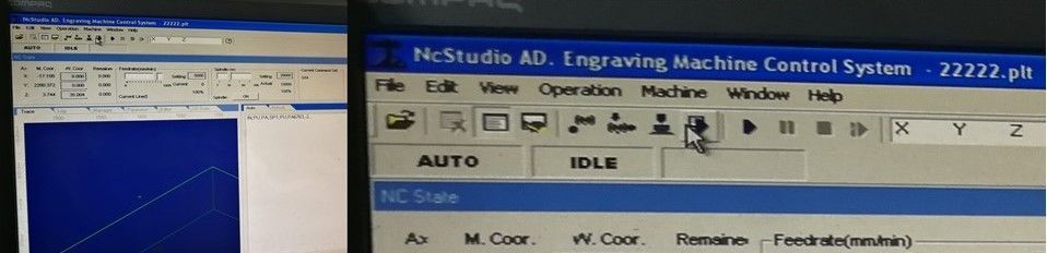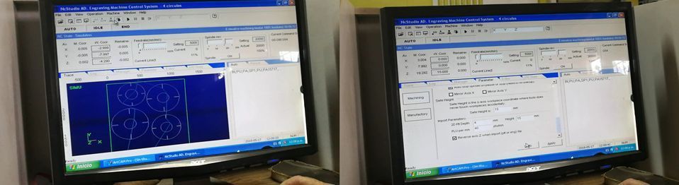 In the program to be able to connect to the machine (NcStudio) we can at a low rate of work progress, then import the file prepared in artcam and click on simulate.