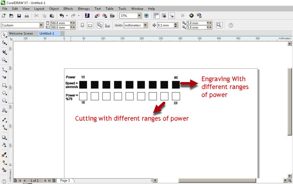 - For engraving we can pick the speed and power depending on the how dark we want the burning to be.