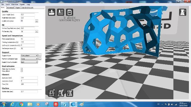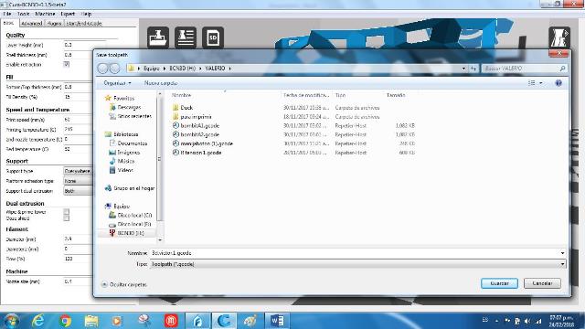 Then some options were modified such as the supports, speed and finishing. Then the gcode was saved.