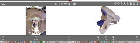 This is an attempt to 3D scan my coffee cup and a silicone gun.