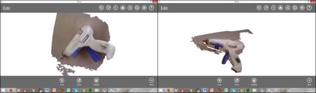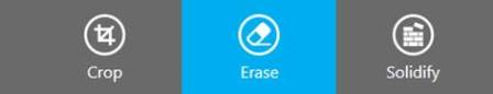 For the scan edition there are three options: Crop (trims unnecessary parts, Erase (erases unnecessary pates) and Solidify (solidity to the scanned object)