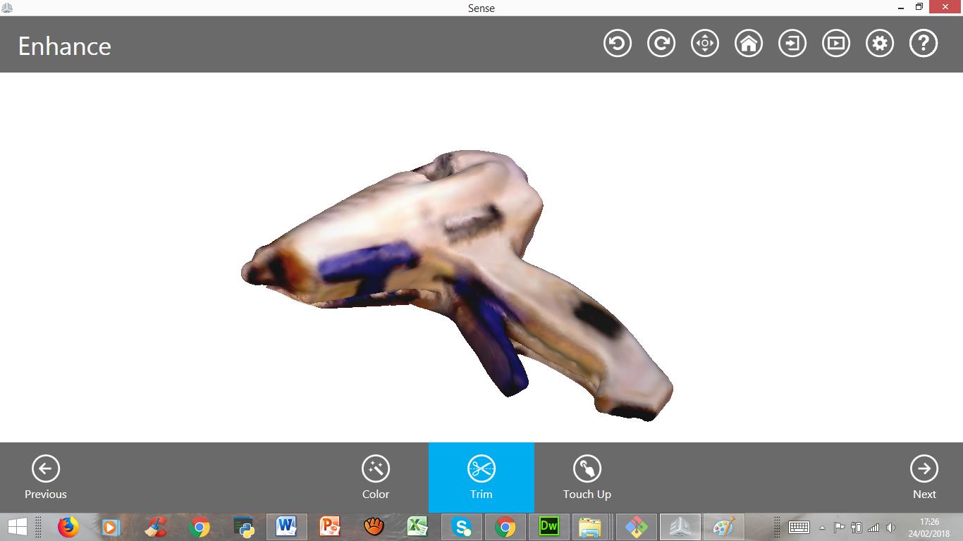 The objects to be scanned can be of three sizes: small, medium and large. To be able to carry out a correct 3D scan it is necessary that the object must be at a distance of approximately 38 centimeters from the scanner.