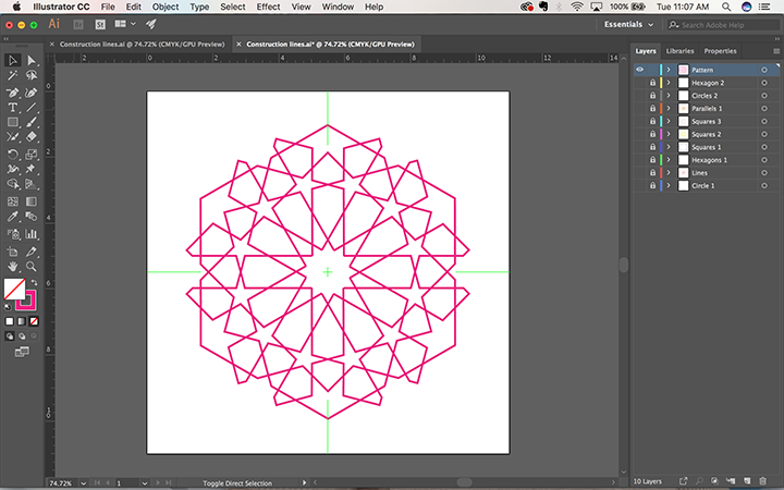 Once I got the basics down I decided to start with building the grid of a simple 6 fold shape. I used Sara Khallaf’s tutorial.
