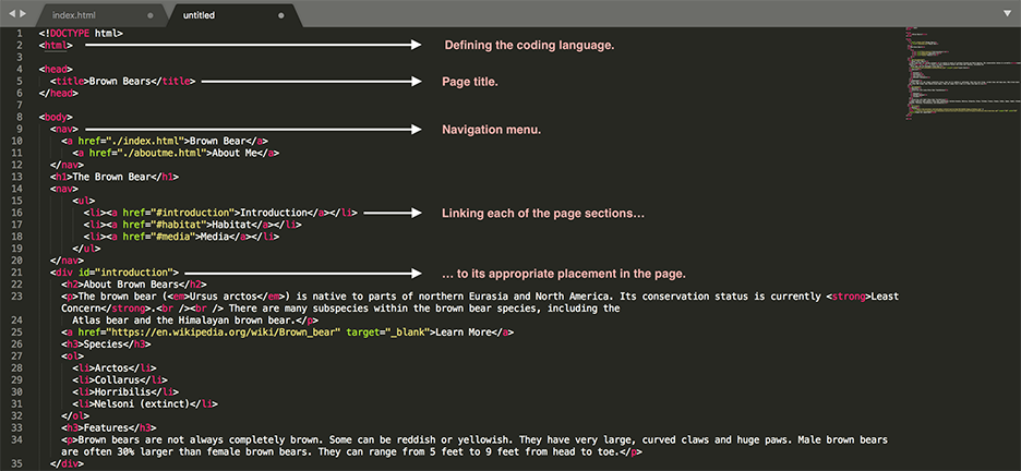 Codecademy HTML beginner lessons are a great resource to get you started in HTML. I highly recommend it. I used the Codecademy beginner code as a template, then I replaced the headline and paragraph content with my own.