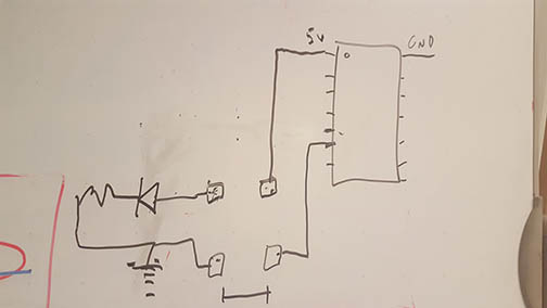 I chose a Green LED and a 4.9 k resistance. That was the easy part. The challenge was in figuring out the button design.