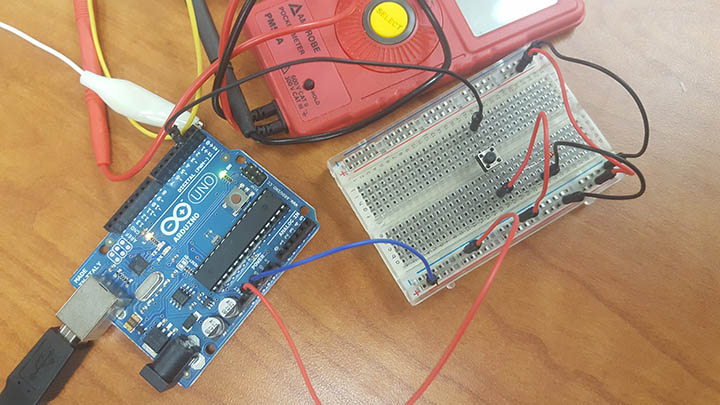After watching CodeNMore’s tutorials, I know that the button we will use is a double pole single throw (DPST) switch. This means that: