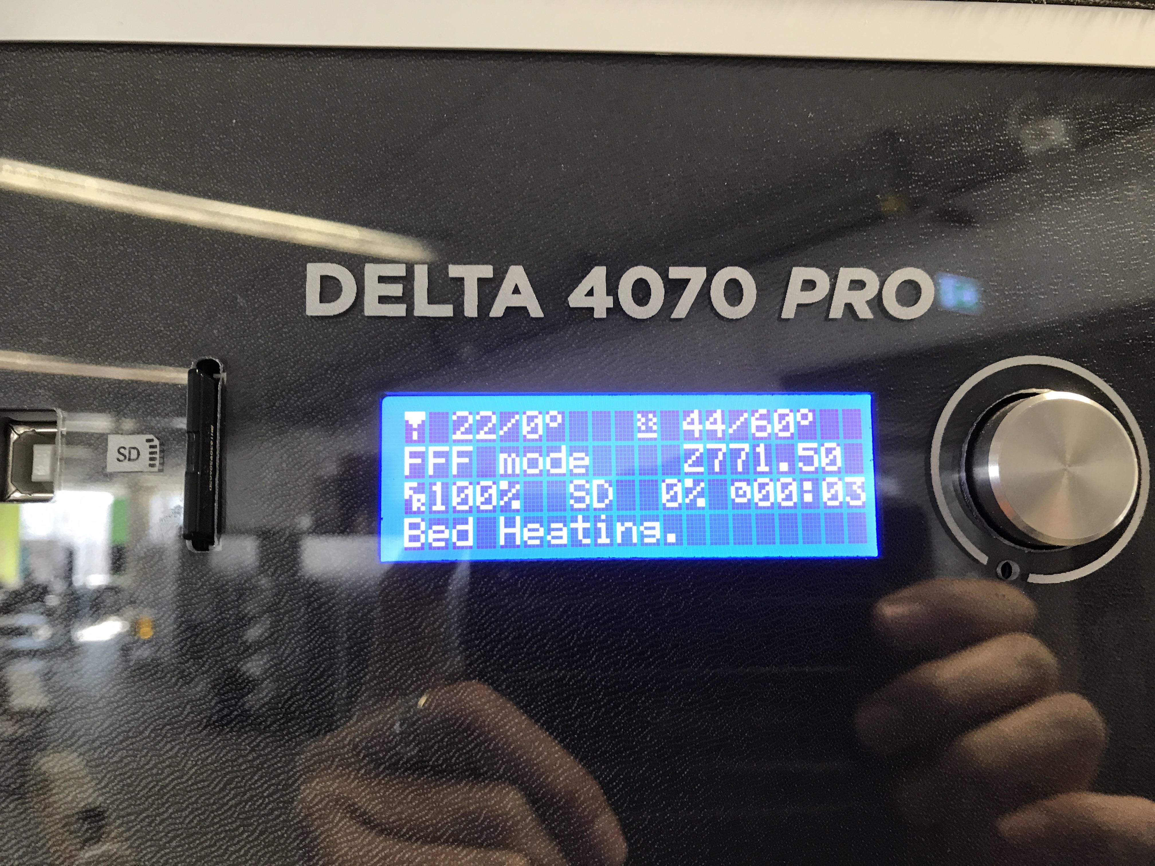 Fig.06: Delta WASP display to be adjusted from 200°C to 215°C print temperature. |