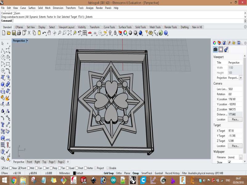 For designing its model in CAD software, I used Rhino 3D for this purpose. Here few snapshots are given: