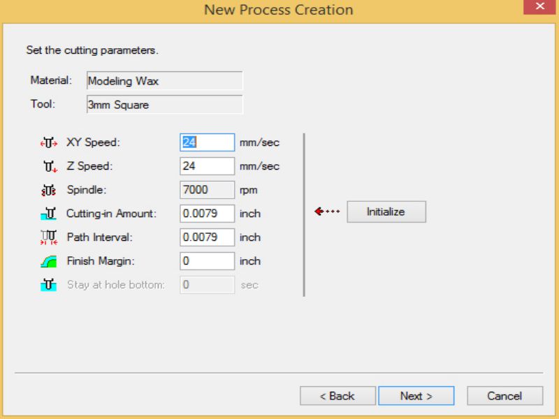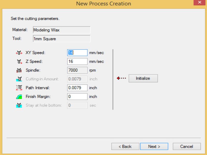 11. XY speed as '24' mm/sec, then 'Next'.~~~~~ 12. Name it, like 'Nadir_Roughing', then 'Finish'.